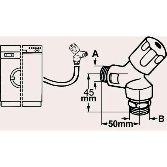 verchromtes Maschinen-Auslaufventil aus MessingMaß: AG 12,70 mm ( 1/2)Schlauchanschluss Ø 14 mmInnen- und AG 19,05 mm ( 3/4 )inklusive Schlauchverschraubungmit Rücklaufschutz