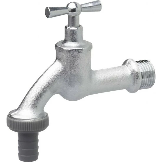 Auslaufventil – Messing matt verchromt – AG 1/2 für 1/2 Wasserschläuche – Mit SchlauchverschraubungMessing matt verchromtAG 1/2 für 1/2 WasserschläucheMit Schlauchverschraubung