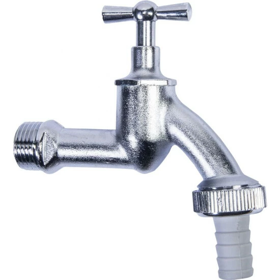 Auslaufventil – Messing matt verchromt – AG 3/4 für 3/4 Wasserschläuche – Mit SchlauchverschraubungMessing matt verchromtAG 3/4 für 3/4 WasserschläucheMit Schlauchverschraubung