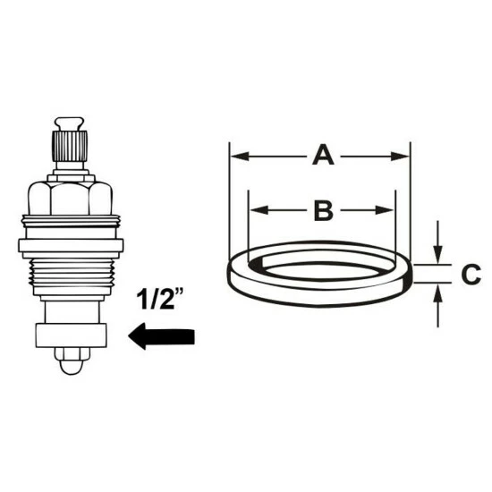 Hahnscheibensortiment mit Loch Für handelsübliche Armaturen, Für Heiß- und Kaltwasser, einsetzbar, für Temperaturen bis +70°C, 2 Gummi-Hahnscheibe mit Loch für Ventiloberteil 1/2, A= 15 mm, B= 4 mm, C= 4 mm, 2 Gummi-Hahnscheibe mit Loch , A= 16 mm, B= 4 mm, C= 4 mm, 2 Gummi-Hahnscheibe mit Loch für Ventiloberteil 1/2, A= 17 mm, B= 5 mm, C= 4 mm,