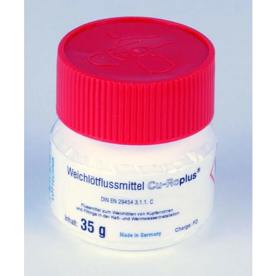 Dieses pastöse Flussmittel ist zum Weichlöten von Kupferrohren in der Trinkwasser- und Heizungsinstallation.Inhalt: 35 gfür Lötfittingsfür die Trinkwasser-InstallationInhalt: 35 gfür Lötfittingsfür die Trinkwasser-Installation