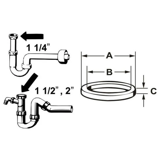 passende Gummi-Dichtungen für Ablaufverschraubungen, z. B. Siphon mit 2“2 StückInnendurchmesser: 45 mmStärke: 3 mmMaß: Ø 55 mmBetriebstemperatur max. + 60 ° C50,8 mm (2“ )