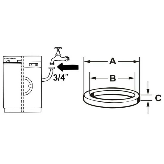 Sie erhalten hier die passende PVC-Dichtung für einen handelsüblichen Maschinenzulauf. Mit dem integrierten Sieb werden Unreinheiten zurückgehalten. So ist z. B. Ihre Waschmaschine optimal geschützt.1 StückInnendurchmesser: Ø 18 mm = BAußendurchmesser: Ø 23 mm = ABetriebstemperatur max. + 60 ° CStärke: 2 mm = Cinkl. Schmutzfangsieb19,05 mm (3/4)