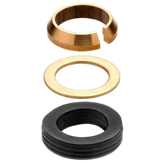 Gummi-Quetschdichtung mit passendem Konus-Klemmring und Messing Gleitring2 StückInnendurchmesser: 8 mmStärke: 3,5 mmBetriebstemperatur max. + 60 ° CMaß: Ø 14 mm