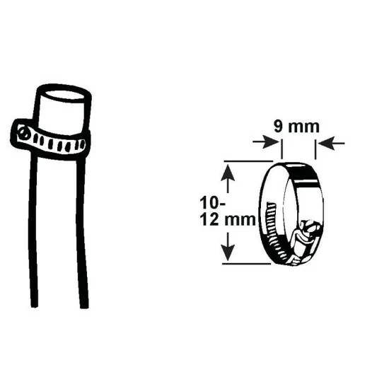Geeignet für Schläuche Ø 10 mm und 16 mm.9 mmBand und Gehäuse aus rostfreiem EdelstahlSchraube verzinkt2 Stück