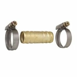 Schlauchverbinder aus Messing inklusive 2 Schlauchschellen aus BlechØ 10 – 16 mmBreite der Schellen: 9 mmLänge Verbinder: 10 mm
