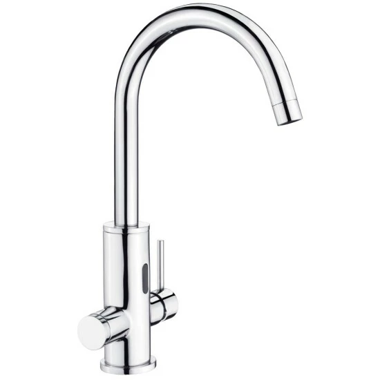 Elektronische Infrarot Spültisch-Armatur SENSO Betrieb über Sensor-/Infrarot-Steuerung oder Standard-Einhebelmischer-Bedienung.
