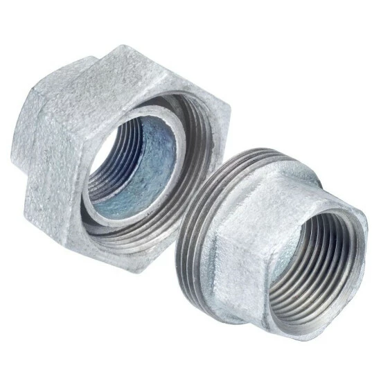 Verzinkte Temperguss-Verschraubung mit Innengewinde, flachdichtendInnengewinde 2 x 25,40 mm ( 1 “ )konisch dichtendverzinkt