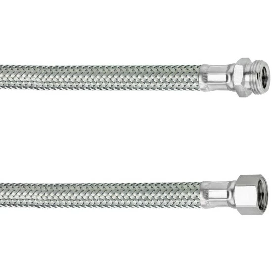 ‚Flexible Verbindungsschläuche KTW-A Edelstahl Umflechtung, Betiebsdruck: max. 10 bar, Betriebstemperatur: max. + 90° C, Eine Seite gerade Verschraubung IG, Eine Seite Außengewinde, Inkl. Dichtung, 3/8“ IG, 3/8“ AG, Länge 100 mm‘