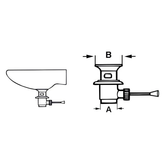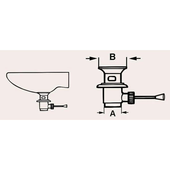 Messing verchromt, Ventilober- und Unterteil aus Messing, A 11/4″ AG, B Ø 62 mm