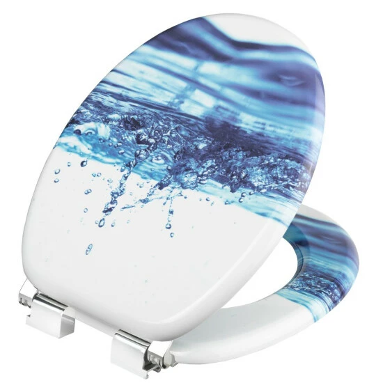 Der alte Toilettendeckel hat ausgedient, das Gewinde löst sich langsam und damit rutscht der gesamte WC Sitz bei jeder Benutzung hin und her. Es wird höchste Zeit für die Anschaffung eines neuen WC Sitzes. Optisch ansprechend sollte er sein und möglich geräuscharm funktionieren. Absenkautomatik heißt das Zauberwort. Mit dieser Methode wird ein langsames und stilles Absenken des WC-Deckels erreicht. Ein eigens integrierter Mechanismus sorgt ab einer bestimmten Neigung dafür, dass der Deckel sanft auf der WC-Brille aufkommt. Vorbei ist die Zeit des Erschreckens, wenn der Toilettendeckel wieder einmal aus der Hand geglitten ist. Gerade bei Kindern ist hier die Verletzungsgefahr, aufgrund gequetschter Finger, wesentlich geringer einzuschätzen. Bei der Kreation des Designs lässt der Hersteller bei diesem WC Sitz Wassertropfen spielen. Die farbliche Gestaltung in blauen und türkiesen Tönen auf weißem Untergrund wird zahlreiche Badezimmer um einen optischen Blickfang bereichern.