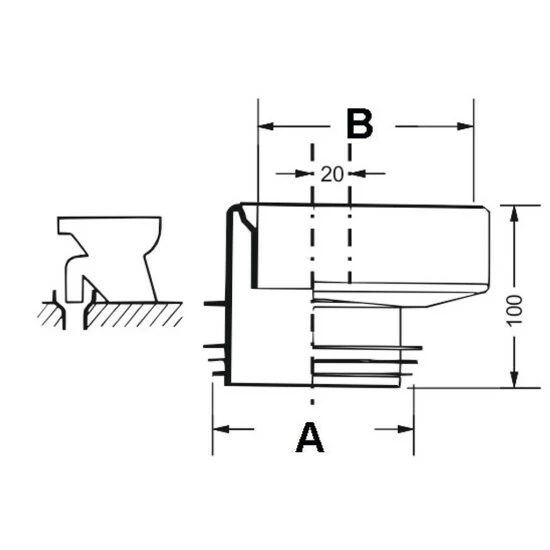 für WC mit Abgang innen senkrecht, A 100 110 mm, B 100 mm