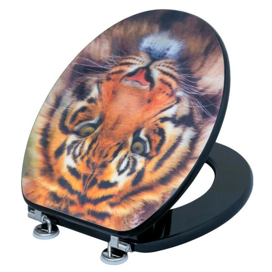 Der WC-Sitz mit einem realistischem 3D-Dekor wird aus hochwertigen, pflegeleichten Holzfasern, die zu einer Platte gepresst werden (MDF), hergestellt.
