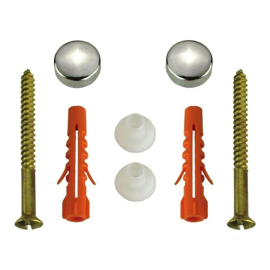 WC und Bidet-Befestigungssatz von CornatSet bestehend aus:2 Messing-Sechskantschrauben 6 x 70 mm2 Dübel ø 8 mm2 Kunststoffscheiben2 ZierkappenFarbe: beige