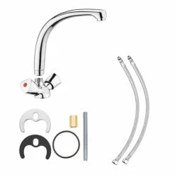 Billig ✔️ CORNAT Lisa Spültisch-2-Griff-Einlochbatterie Mit Schwenkbarem Gussauslauf, Chrom, LI563 💯